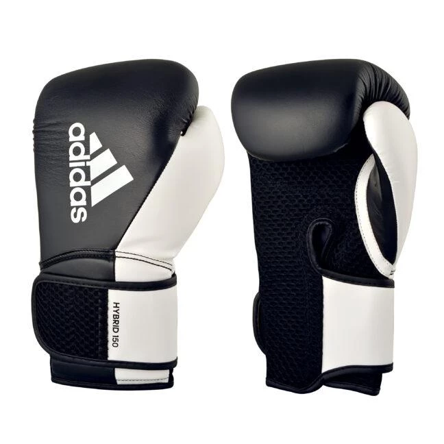 The new adidas Hybrid 150 Boxing Gloves covered with a 100% durable PU material, This glove has a mesh inner palm for coolness and help keep the glove dry after training Inner foam is Injection PU moulded foam Hook & look strap.
